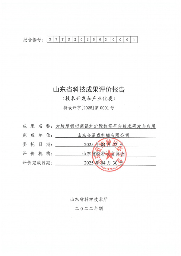 4月30日,山東省特種設(shè)備協(xié)會(huì)組織召開(kāi)“大跨度鋼桁架鍋爐爐膛檢修平臺(tái)技術(shù)研發(fā)與應(yīng)用”科技成果評(píng)價(jià)會(huì),對(duì)山東金道成機(jī)械有限公司的創(chuàng)新項(xiàng)目進(jìn)行評(píng)估。此次會(huì)議匯聚行業(yè)頂尖專(zhuān)家,最終認(rèn)定該技術(shù)達(dá)到國(guó)內(nèi)領(lǐng)先水平,為鍋爐檢修領(lǐng)域注入新動(dòng)能。